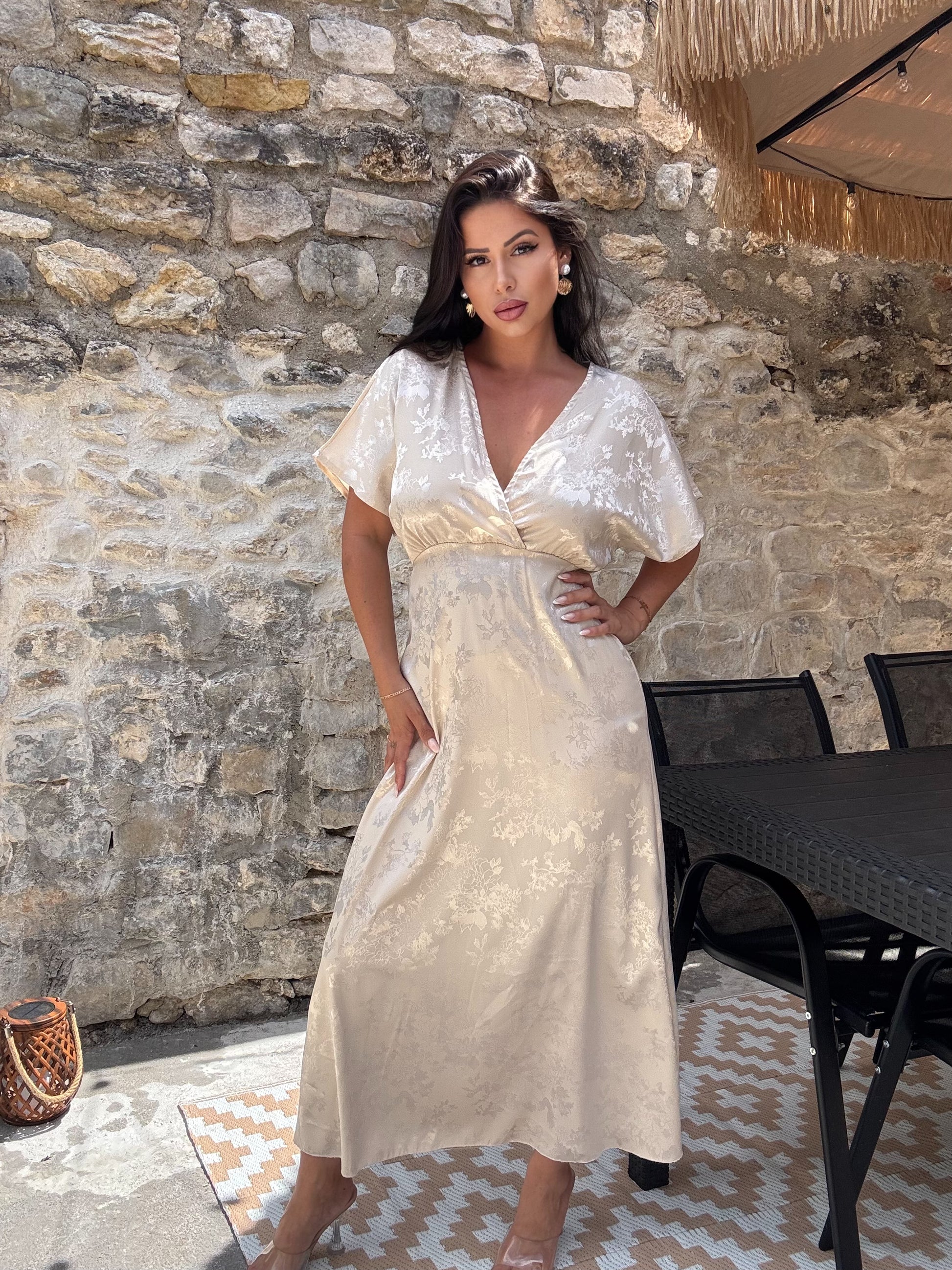 Robe longue à imprimé en satin